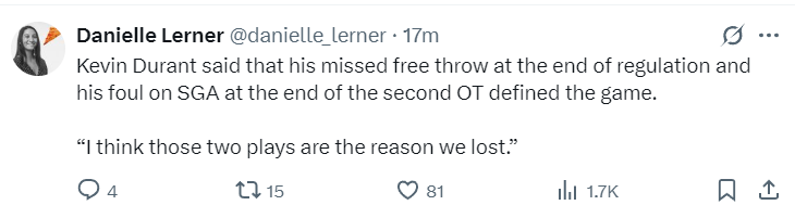 为何KD没吃T?主裁:3位裁判均没看到KD手势!杜兰特仍为失利揽责